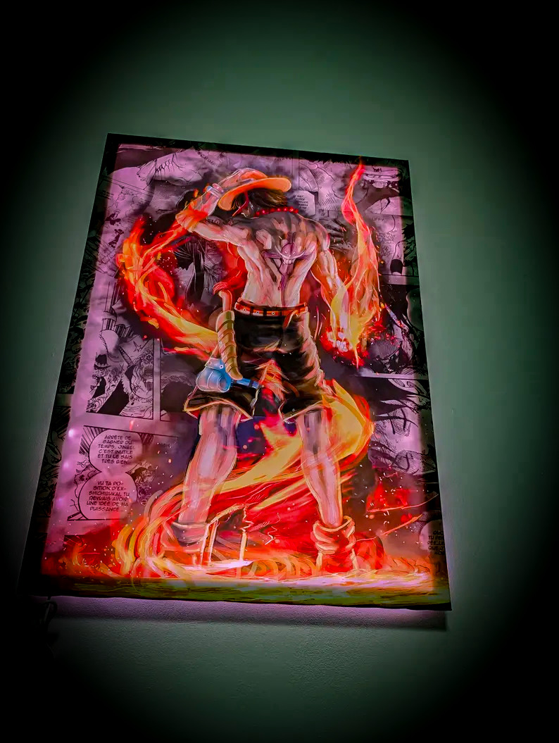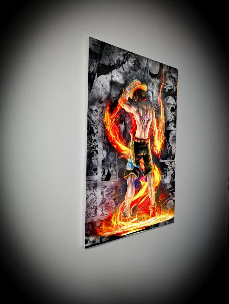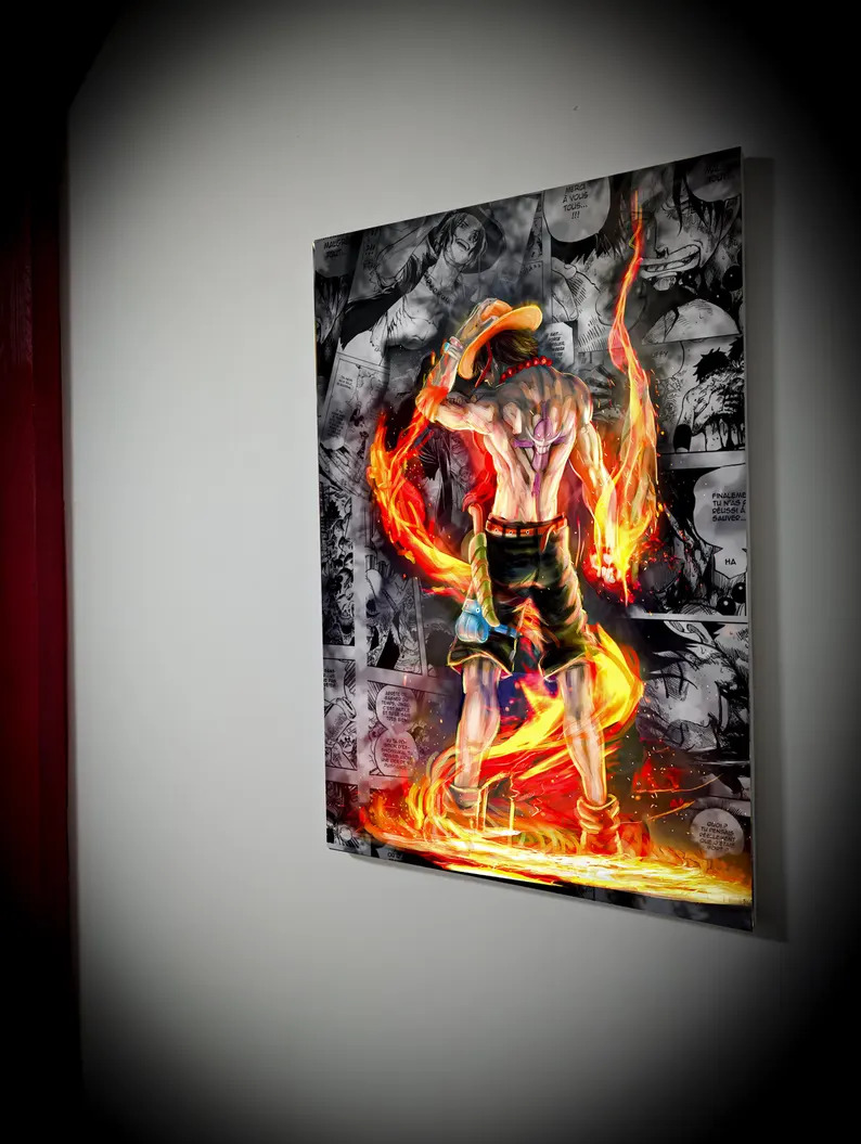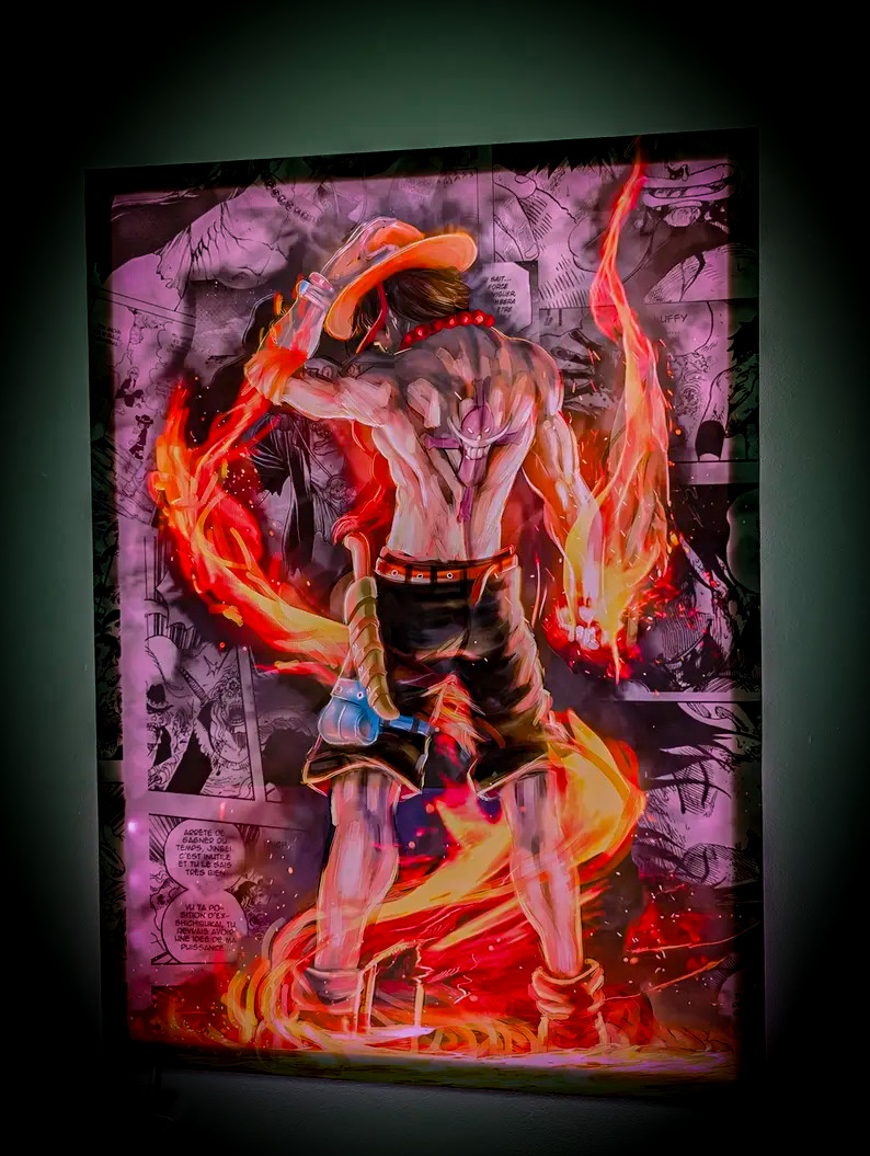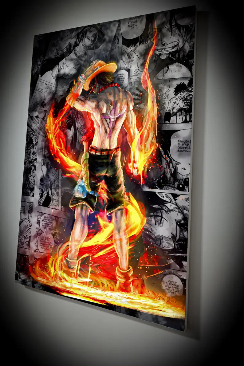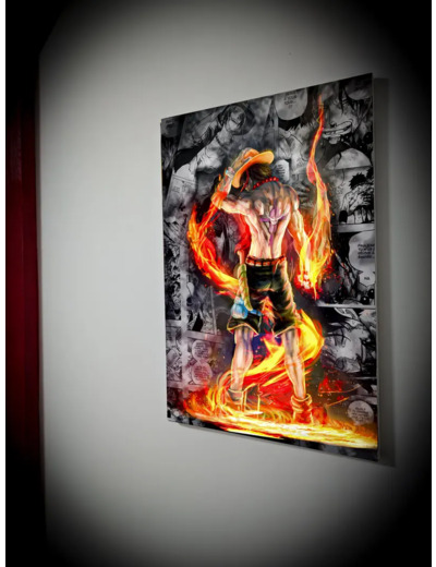 Plongez dans l’univers de One Piece avec ce tableau d’Ace, le frère de Luffy, sublimé par les flammes et la puissance de son fruit du démon.
