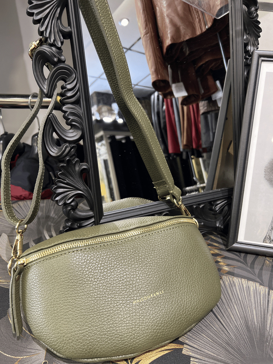 Banane cuir agneau bandoulière cuir fabrication italienne