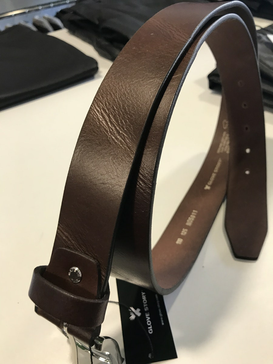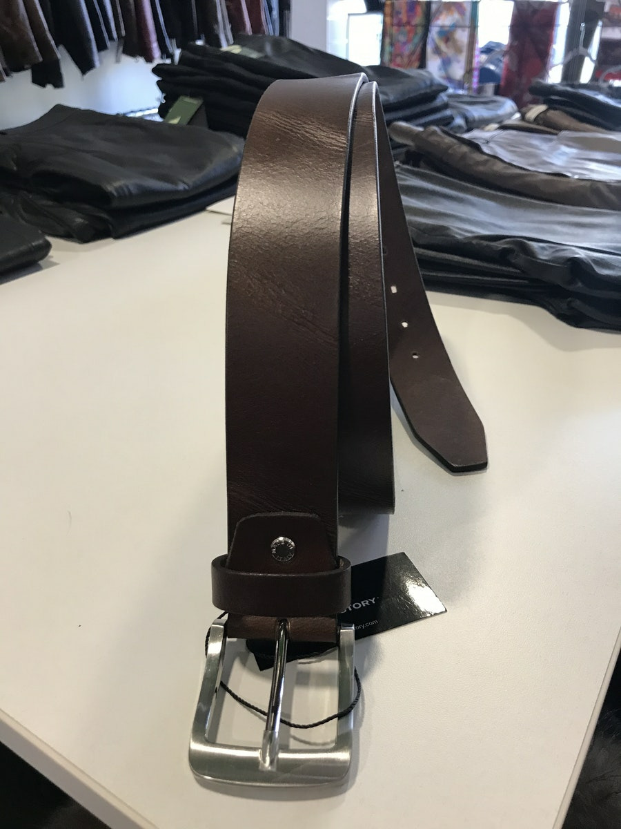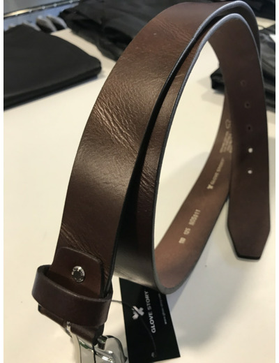Ceinture homme, cuir vachette, 1 passant, boucle acier, coloris marron, noir, bord franc. Fabrication italienne.