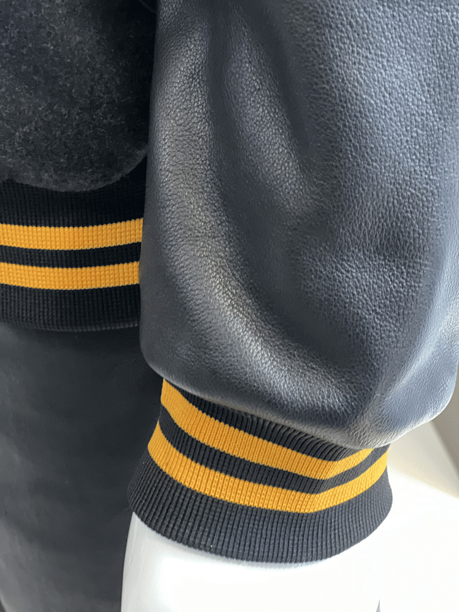 Blouson bomber, teddy universitaire avec une nouvelle version plus moderne, les manches e cuir de vachette et le corps en laine, coloris noir