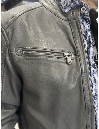 Blouson homme cuir agneau coloris bleu ou marron