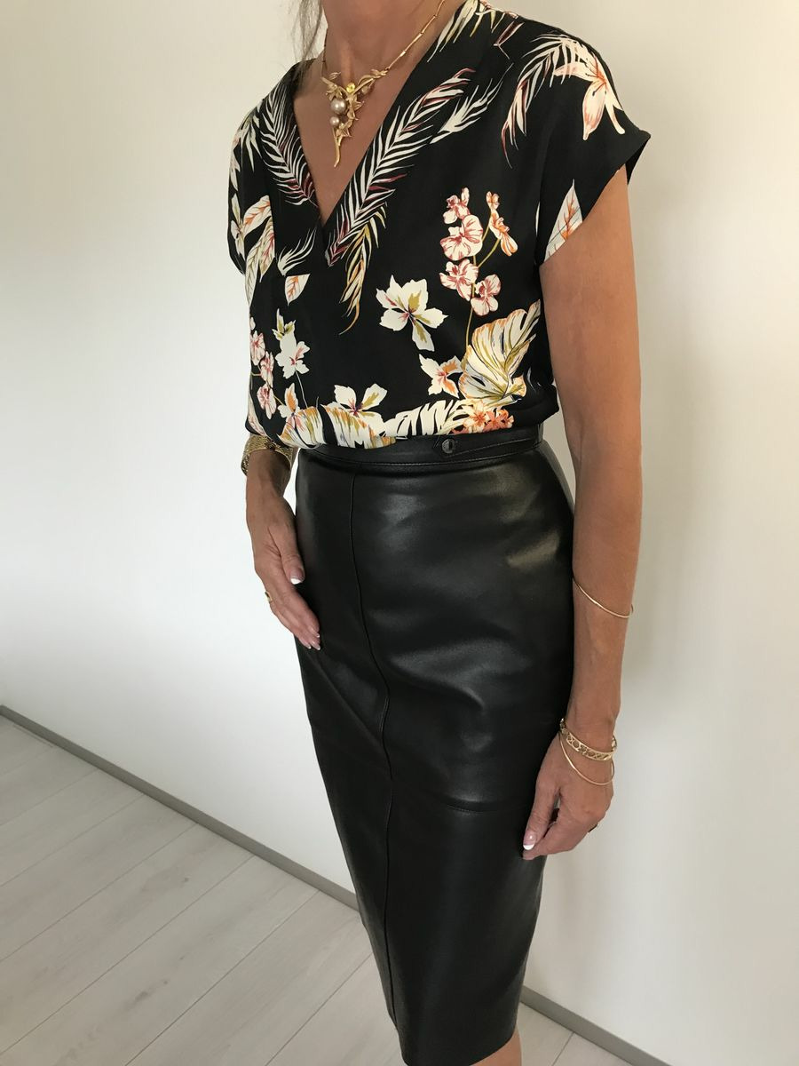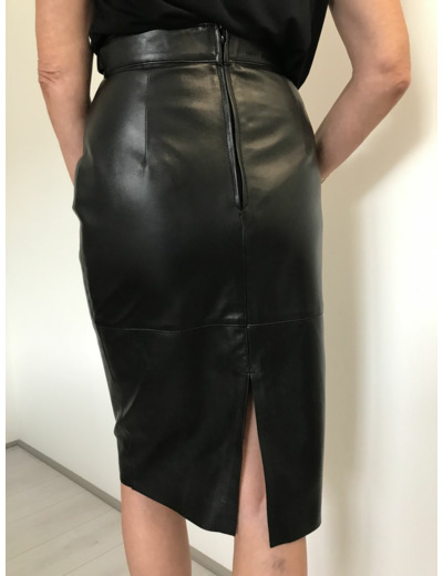 Jupe crayon, cuir agneau, de pattes de serrages monter sur la ceinture, fermeture dos, fente