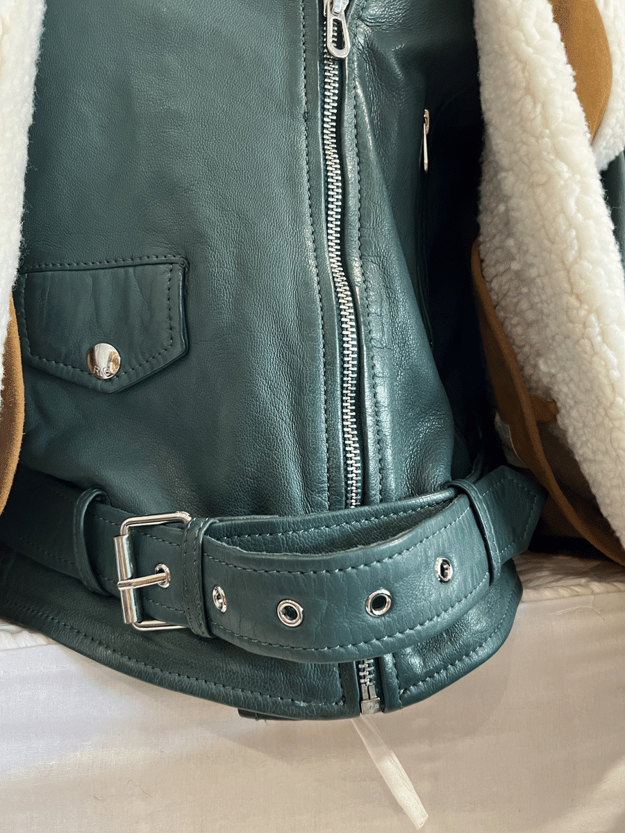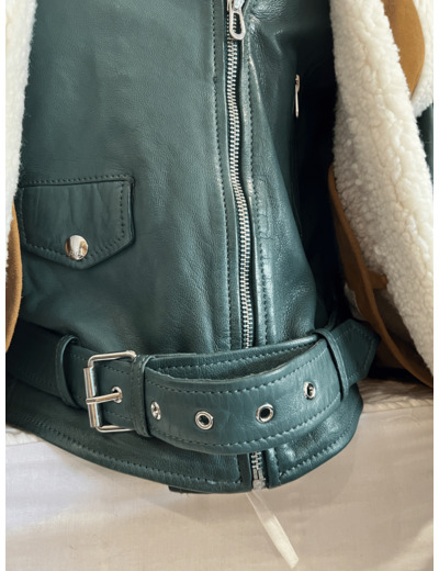Blousons femme biker fabriqués en cuir d'agneau au tannage 100% végétal. Le perfecto se caractérise parmis les détails comme la fermeture zippée asymétrique, les pattes d'épaule et la ceinture à la taille avec boucle de serrage.