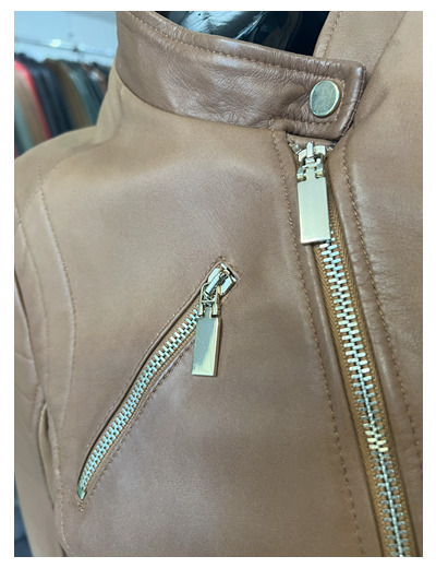 jeu de surpiqures sur le devant du perfecto, sur les épaules et les avant-bras et mi-dos