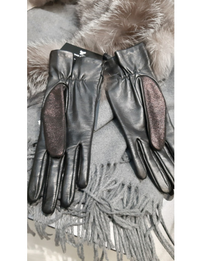 Gants femme cuir agneau doublés soie coloris noir