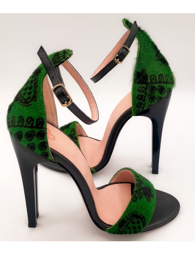Escarpins à bouts ouverts en cuir à poils upcyclé de qualité, origine France.