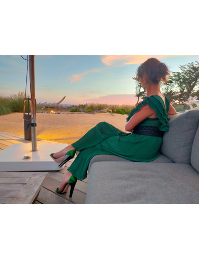 Ces nus-pieds "open-toes" sur talons doubles sont issues d’un réel travail de botterie qui leur confère, du haut de leurs 12 cm, plus de stabilité et donc plus de confort à la marche qu’une sandale sur talon classique.
