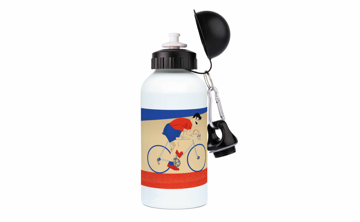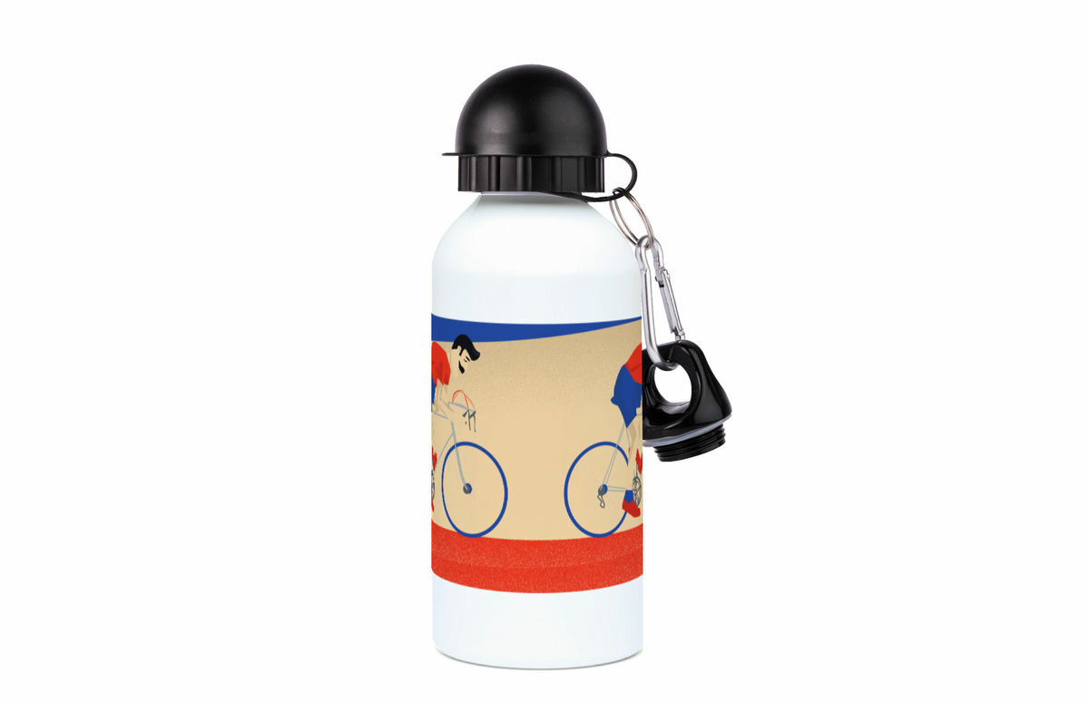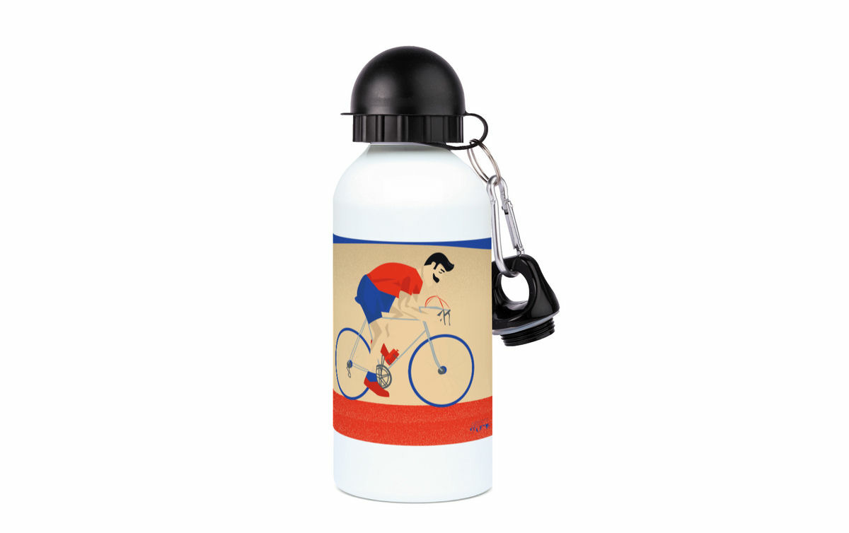 Cette gourde en aluminium personnalisable est un clin d’œil élégant et sportif à tous ceux qui vivent pour le cyclisme, les balades au grand air, les montées de col, les sorties dominicales ou les courses endiablées. L’illustration exclusive "Monsieur Vélo" capture l’essence du cycliste passionné, concentré, en pleine échappée ou dans un sprint final, le tout avec un style graphique moderne et inspiré des affiches vintage du Tour.