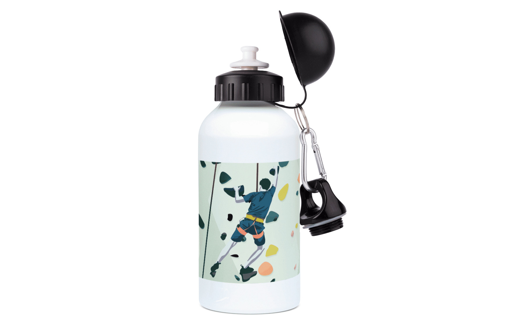 Pourquoi choisir cette gourde pour les grimpeurs passionnés ?- Illustration exclusive capturant la puissance et la détermination masculine sur la roche