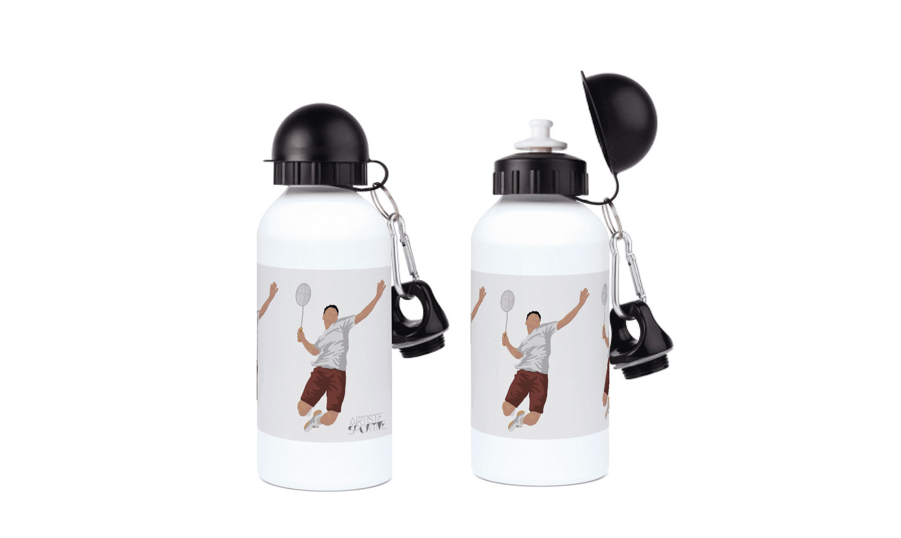 La gourde en aluminium "Joueur de badminton" personnalisable rend hommage à la vivacité, à la précision et à l’agilité de celles et ceux qui vivent leur passion raquette à la main. Avec son illustration dynamique d’un joueur en pleine action, elle incarne l’esprit compétitif, l’endurance et l’élégance de ce sport aussi stratégique que physique.