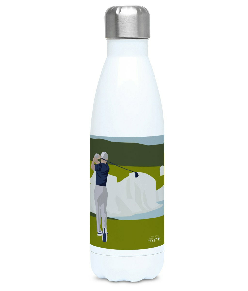 C'est une illustration inspirée par le beau paysage anglais du sud de l'Angleterre. Ici, il s'agit d'un golfeur à Beachy Head sur les falaises des Seven Sisters près d'Eastbourne. C'est un superbe spot de promenade et de golf.
