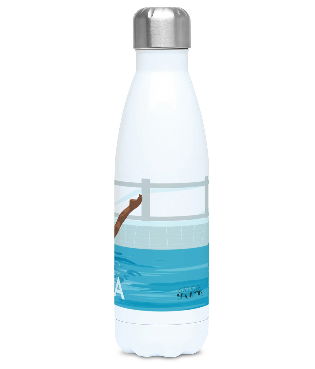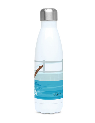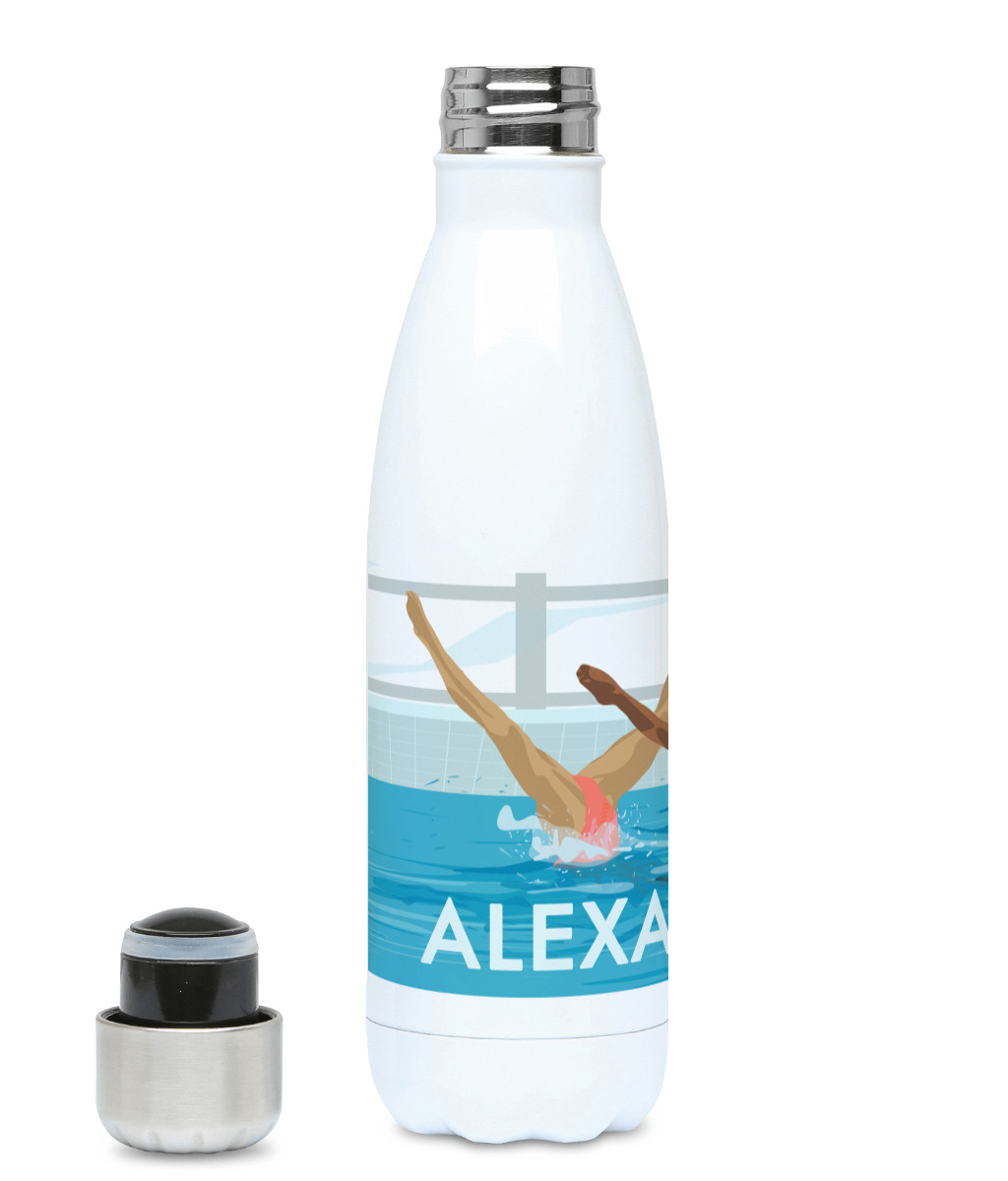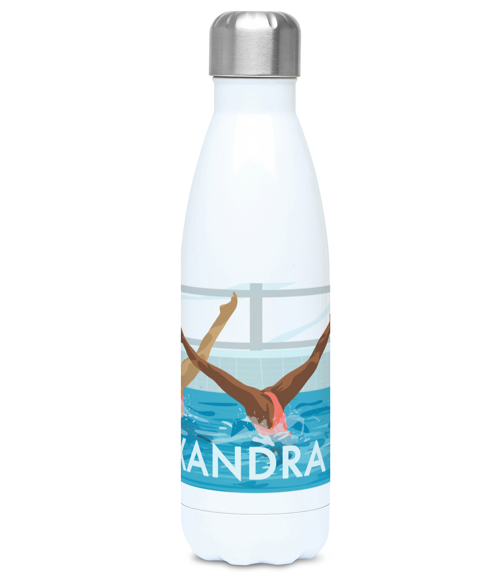 Cette gourde isotherme personnalisable est un cadeau unique grâce à son illustration de natation synchronisée. Je l'imprime dans mon atelier à Tours.