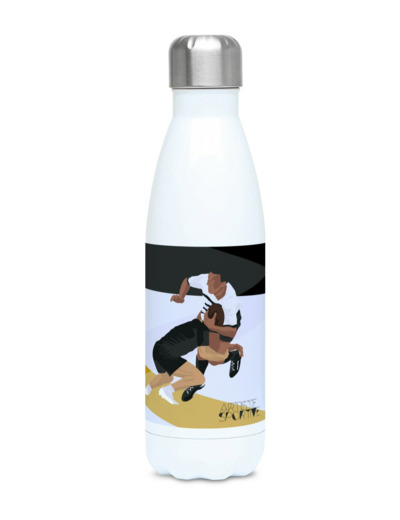 C'est une illustration que j'ai réalisée inspirée par les joueurs et joueuses de rugby que je croise. Parfait pour vos entraînements, vous pouvez personnaliser votre gourde en y ajoutant un prénom !