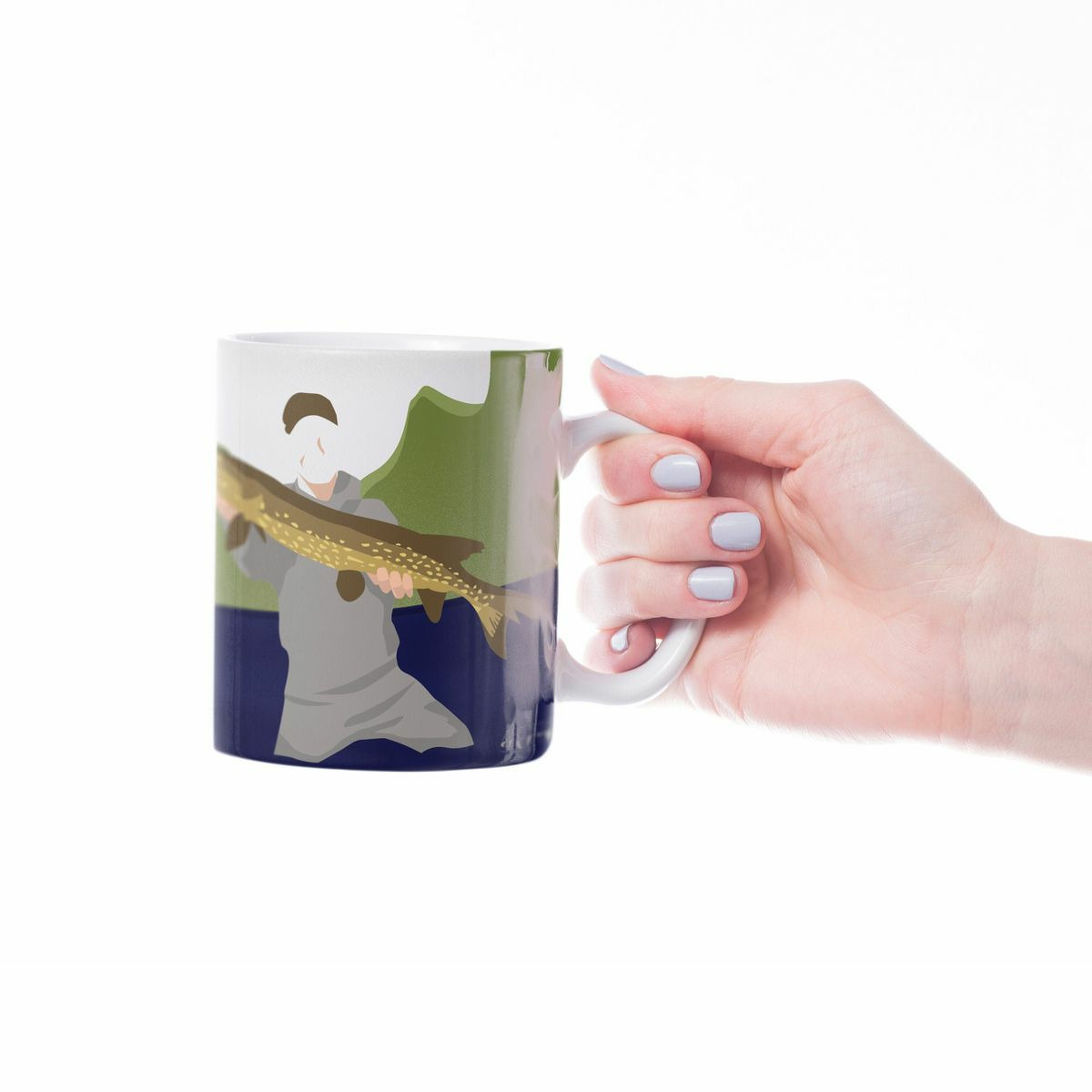 Tasse de pêche : 'Antoine le pêcheur' c'est une illustration inspirée par mon beau-cousin qui adore la pêche.