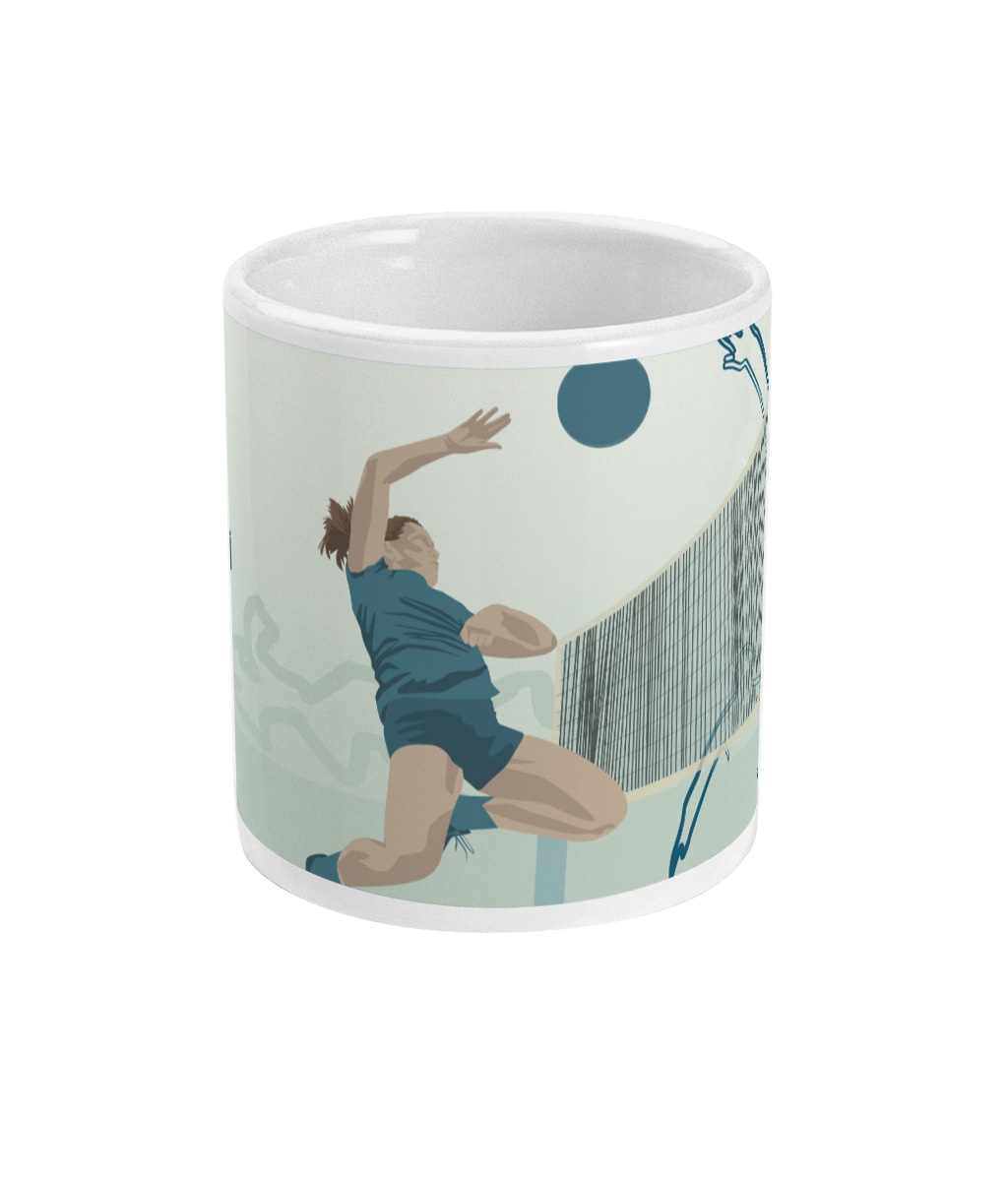Tasse de volleyball : 'La volleyeuse' C'est une illustration inspirée par les passionnés de volley ! C'est un cadeau unique pour ceux et celles qui aiment le sport et le volley ball : les volleyeurs, les volleyeuses, les entraîneurs de volley ball, les clubs de volley ball ou pour les sportifs et sportives qui aiment le volley ball.