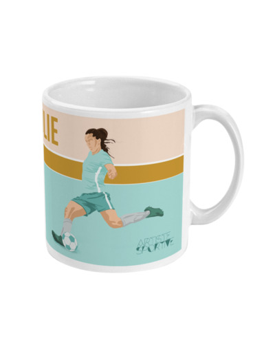 Tasse à personnaliser de Football : 'Footballeuse'. C'est une illustration que j'ai réalisée inspirée la coupe du monde de football et l'équipe de France ! C'est un cadeau unique pour ceux et celles qui aiment le sport et le football: les footballeurs, les footballeuses, les coachs de football et entraîneurs de foot et clubs de foot ou pour les sportifs et sportives qui aiment le football.