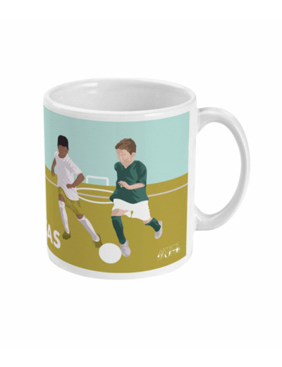 Ajoutez une touche de football à vie avec notre Mug "Les Deux Footballeurs", réalisé par Artiste Sportive à Tours, France. Cette tasse est idéale pour les amateurs de football et peut être un cadeau parfait pour Noël, un anniversaire, ou pour exprimer votre reconnaissance envers votre coach.