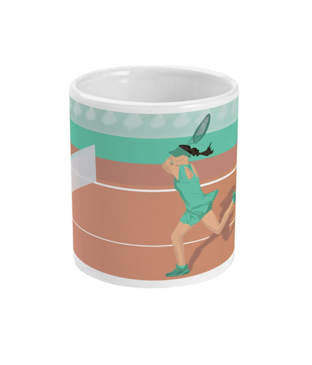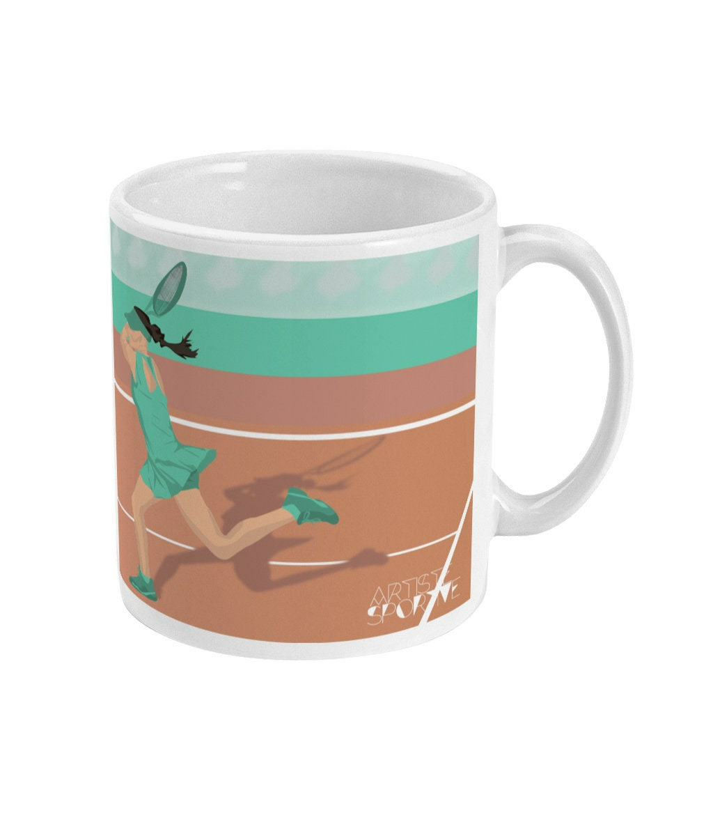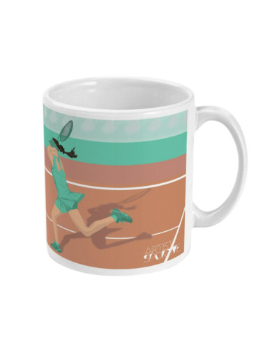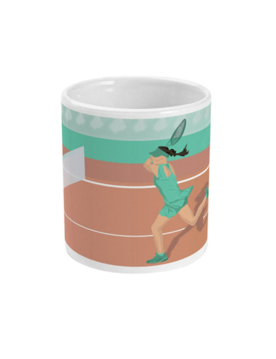 Tasse de Tennis : 'Joueuse de tennis'. C'est une illustration que j'ai réalisée inspirée les joueuses de tennis telles que Serena Williams, Naomi Osaka, Mary Pierce, Amélie Moresmo. C'est un cadeau unique pour ceux et celles qui aiment le sport et le tennis: les tennisman, les tenniswoman, les coachs de tennis et entraîneurs de tennis et clubs de tennis ou pour les sportifs et sportives qui aiment le tennis.