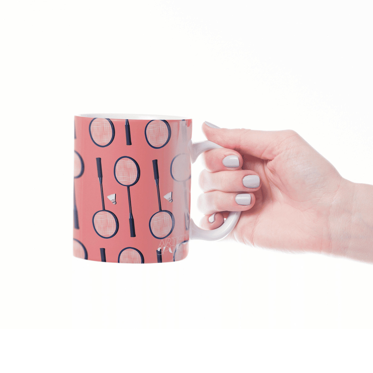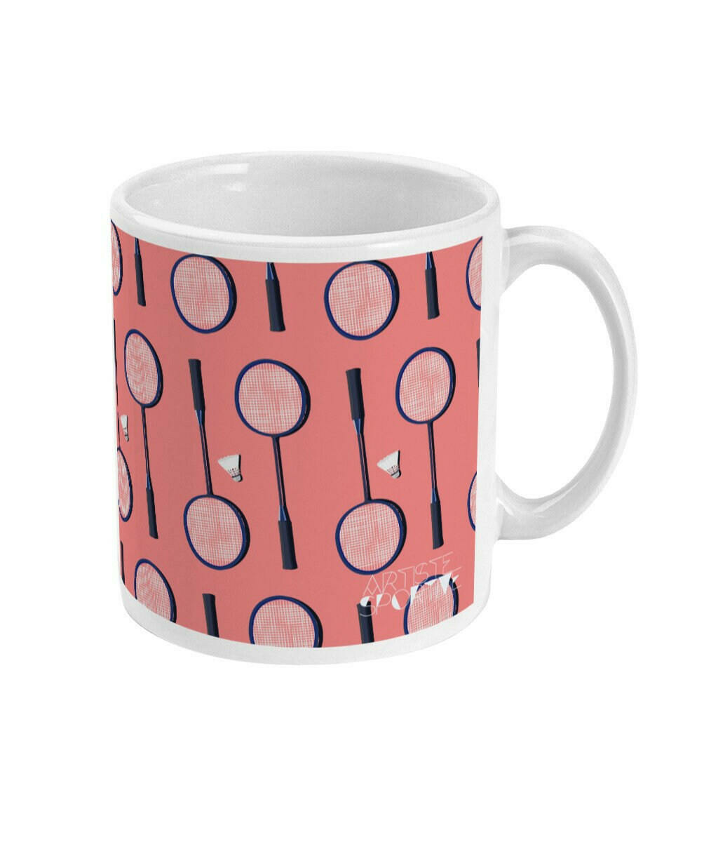 Tasse de Badminton : 'La raquette de badminton'. C'est une illustration que j'ai réalisée inspiré par le dynamisme du badminton. C'est un cadeau unique pour ceux et celles qui aiment le sport et le badminton: les joueurs de badminton, les joueuses de badminton, les coachs de badminton et entraîneurs de badminton et clubs de badminton ou pour les sportifs et sportives qui aiment le badminton.