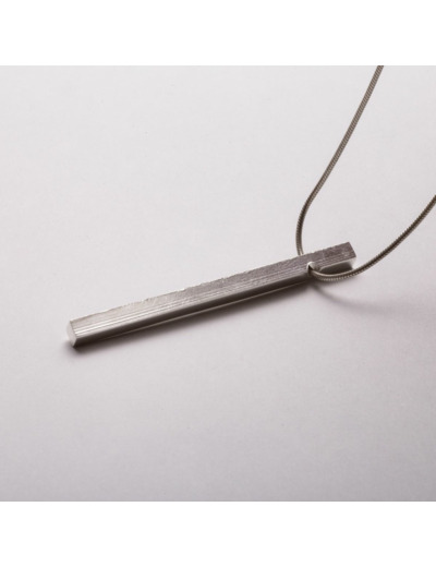 Fabriqué à partir d'un fil carré de 4mm, le sautoir à une longueur de 55mm. Une des faces est polis, tandis que les autres sont striées.