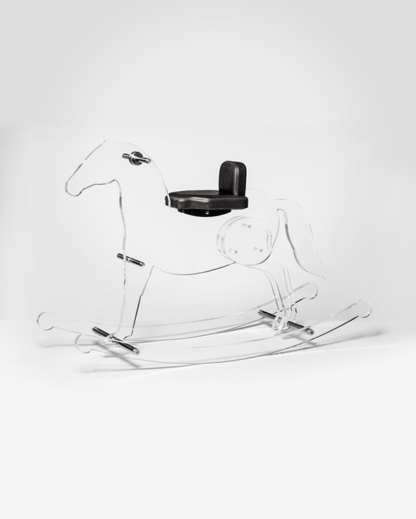 Fabriqué en France dans notre atelier, ce cheval à bascule est transparent et poétique.
