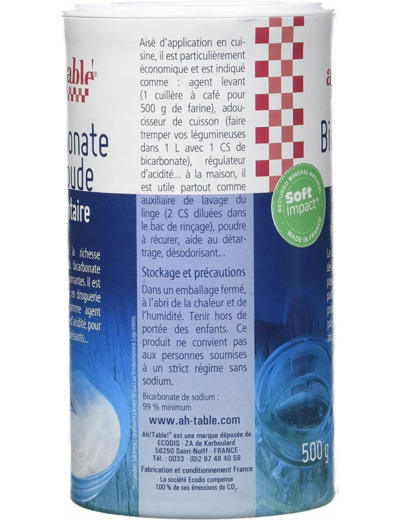 Bicarbonate De Soude Alimentaire 500G Ah Table