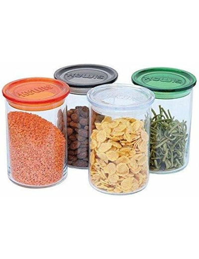 Bocal en verre pratique d'une capacité de 0,8 litres, idéal pour stocker et préserver les aliments en vrac : fruits secs, chocolat, céréales, légumes... Caractéristiques : Capacité : 0,8 l Diamètre : 9 cm Hauteur : 15 cm Lavage : passe au lave-vaisselle Couvercle ABS sans phtalate et bisphénol Matériau : verre borosilicate Résistance du matériau : -40 °C à 300 °C. Convient au congélateur. Le couvercle en ABS sans phtalate ni bisphénol est fixé par un joint hermétique et flexible. * Vendu à l'unité. Couleurs aléatoires selon arrivage.