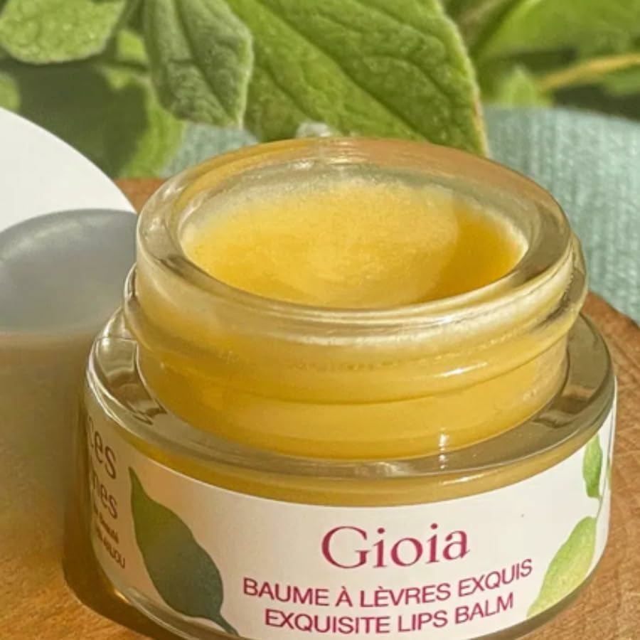 Gioia des Douces AngevinesLe nouveau baume Gioia est un soin 100% naturel qui protège les lèvres des intempéries, du vent ou des variations climatiques. Il peut s'utiliser aussi bien l'été que l'hiver. Sa formule 100% végétale nourrit en profondeur, prévient le vieillissement prématuré de l'épiderme et offre un effet illuminateur.Au beurre de cacao, avec zeste d'orange allié à la vanille, le petit pot de baume va vous surprendre et enchanter tous vos instants de la journée. Fragrance raffinée, fruitée et gourmande.Utilisation du soin des lèvresPrélever une petite noisette avec le doigt, appliquer sur les lèvres. La texture fine de Gioia fond sur les lèvres sans effet gras, et laisse une sensation de confort. Renouveler quand nécessaire. Lors des journées froides, envelopper votre visage du baume onctueux Freyja et vos lèvres avec Gioia.Baume à lèvres GioiaPot en verre : 6 gPetit pot en verre recyclable, un format nomade pour emmener partout.Labels : Cosmos Organic, Vegan & Cruelty free, One voiceComposé de 100% d'ingrédients d'origine naturelle et 100 % issus de l'agriculture biologique.Fabrication en France (Région : Ouest)Ingrédients principaux du baume à lèvres bio et veganBeurre de Karité : nourrit en profondeur, protège et adoucit la peau. Il stimule les fonctions de régénération de l'épiderme et la réparation des peaux irritées.Beurre de Cacao : nourrit, adoucit et aide la peau à conserver son hydratation en consolidant son film hydrolipidique, bonne barrière protectrice pour les lèvres. Sa richesse en squalène en fait une protection contre le dessèchement de la peau. C'est aussi un excellent anti oxydant.Urucum : puissant anti oxydant et anti radicaux libres naturel, qui prévient le vieillissement cutané. Finement dosé, ce fruit d'ie dont la poudre rouge apporte sa coloration lumineuse, est un véritable sublimateur de teint naturel.