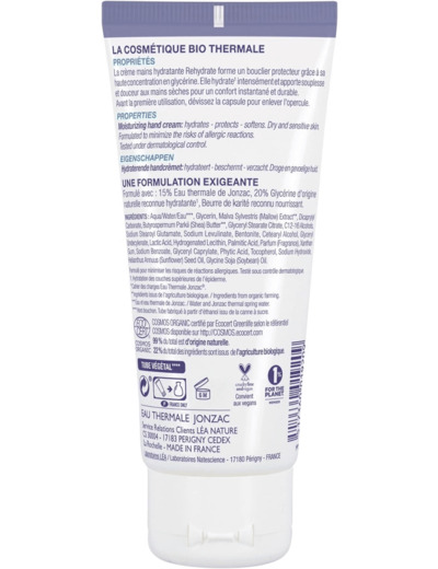 JONZAC CREME MAINS HYDRATANTE 50 ML GROUPE LEA NATURE 23 avenue Paul Langevin - CS 30004 17183 PERIGNY cedex