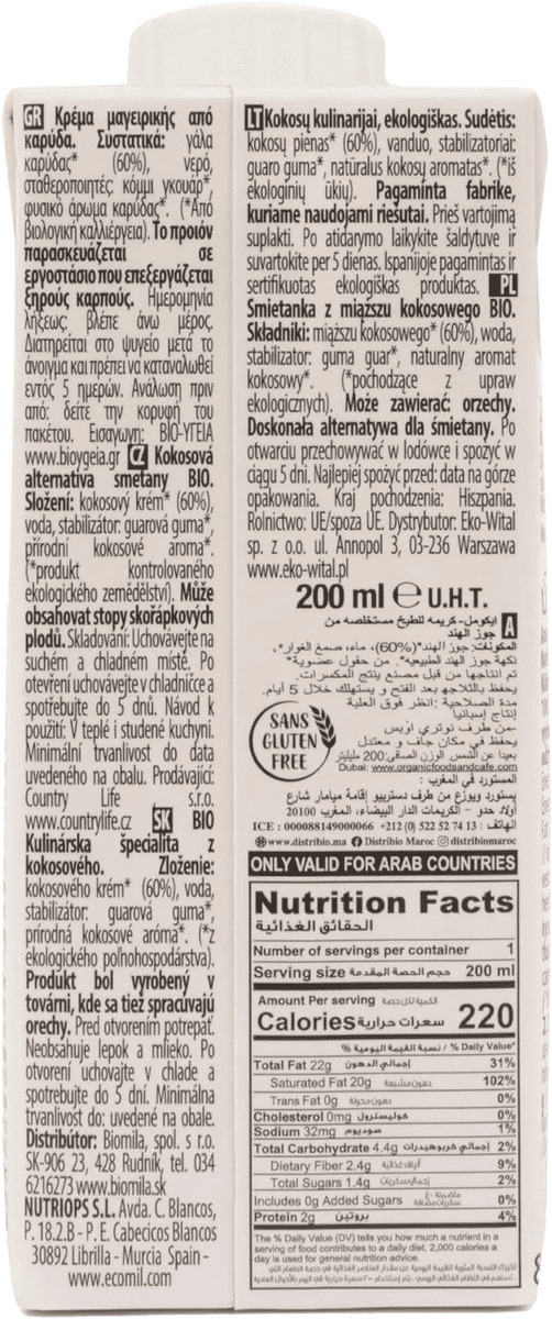 Crema para cocinar de coco cuisine Bio 200ml Ecomil