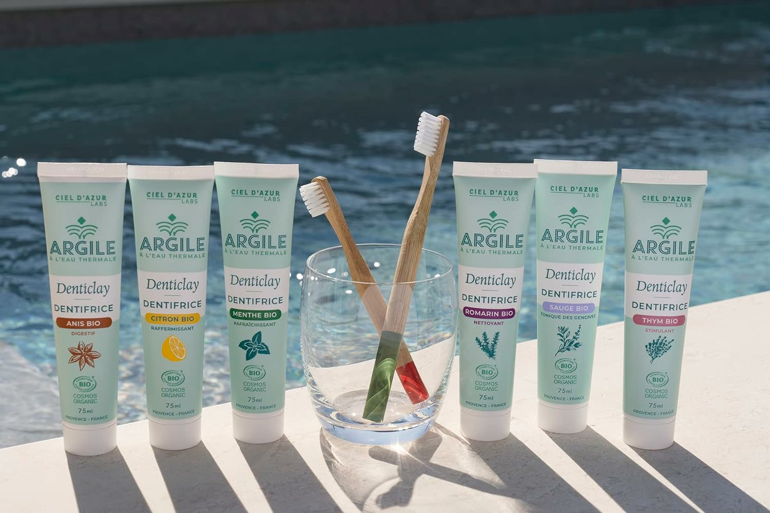 5 arômes Bio au choix : Denticlay vous propose plusieurs arômes Bio, mais toujours avec la même efficacité : choisissez celui qui vous convient le mieux ! Retrouvez Denticlay à l'anis Bio, au citron Bio, à la menthe Bio, au romarin Bio, à la sauge Bio ou au thym Bio.