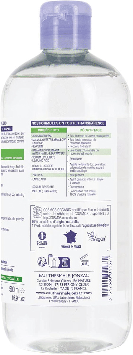 EAU THERMALE JONZAC EAU MICELLAIRE PURIFIANTE 500 ML GROUPE LEA NATURE 23 avenue Paul Langevin, CS30004 - 17 183 PERIGNY CEDEX