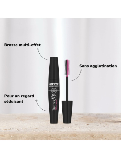 Le Butterfly Effect Mascara confère aux cils un effet incroyable et sensuel. La brosse innovante Butterfly associe 3 effets dans un seul mascara –volume, courbe et définition des cils. La brosse ergonomique aux filaments de gomme apporte courbe et volume maximal. La pointe en forme de balle enrobe les cils les plus fins pour une application précise en un seul geste. Testé sous contrôle dermatologique et ophtalmologique. Est également compatible avec les lentilles de contact. Maintenir la petite brosse à l'horizontale et déplacer de gauche à droite de la racine jusqu'aux pointes suivant la technique du zigzag. Répéter l'opération si besoin est. lavera - Élaborés en Allemagne, les cosmétiques naturels lavera tirent parti des propriétés exceptionnelles de la nature depuis 30 ans pour offrir à tous les types de peau un élixir de beauté sur-mesure. 100% cosmétiques naturels certifiés, formulés à base d'ingrédients végétaux naturels et d'extraits de plantes bio ou d'huiles végétales bio. Nous avons développé des formules de soin uniques, exclusivement à base d'ingrédients naturels parfaitement adaptés aux besoins de chaque type de peau. Nous élaborons nos propres fluides végétaux et extraits biologiques, et les associons à des principes actifs novateurs. 100 % sans conservateurs synthétiques - Parfums et arômes 100% naturels - 100 % sans silicones, paraffines & huiles minérales.