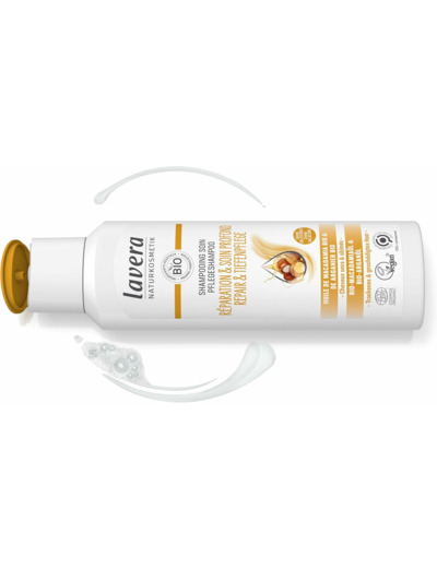 Naturellement efficaces - Découvrez le secret des soins capillaires de lavera: Naturelle et minutieusement équilibrée, notre composition à base d’huile de macadamia bio aux propriétés nourrissantes et de quinoa bio, offre un soin intense aux cheveux fatigués et fragilisés - des racines jusqu’aux pointes. Elle aide même à réparer efficacement les cheveux très abîmés. La formule de soin innovante procure une mousse particulièrement légère et facilite nettement le démêlage. Découvrez une nouvelle dimension de la souplesse et du soin naturel, sans aucun silicone. Avoir bonne conscience avec des cosmétiques naturels certifiés - sans faire de compromis. Nous vous promettons: d’utiliser des formules s et de renoncer aux silicones, aux microplastiques à l’état solide ou liquide ainsi qu'aux colorants et conservateurs artificiels, des compositions naturelles qui ont été composées harmonieusement et en exclusivité par la recherche de lavera avec les meilleurs actifs d'origine naturelle assortis finement les uns aux autres, des cosmétiques naturels qui ont été certifiés par des institutions indépendantes et testés sous contrôle dermatologique, que cet emballage est constitué à 93 % de matière recyclée, d’être une entreprise à l'impact neutre pour le climat. ( la vera ), la vraie, s’engage pour la protection du climat et des animaux. selon le règlement UE relatif aux produits cosmétiques ClimatePartner/12310-1610-1001.