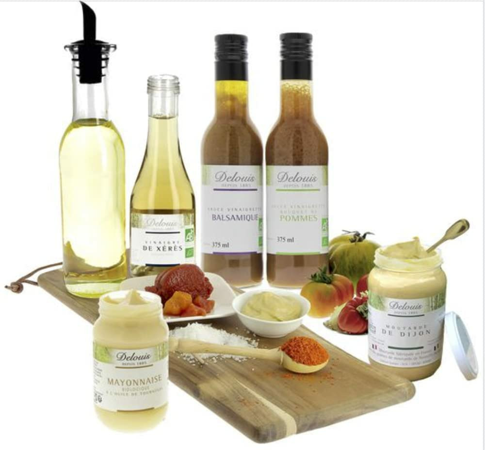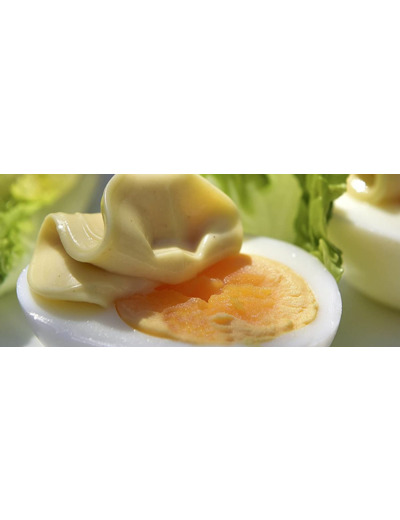 Huile de tournesol désodorisée*, jaune d'oeuf*, moutarde de Dijon*, (graines de moutarde*, vinaigre*, eau, sel marin), vinaigre de cidre*, sel marin, citron frais*. *Issus de l'agricole biologique. Les informations en gras sont destinées aux personnes intolérantes ou allergiques. Valeurs nutritionnelles pour 100g : Energie : 3009 kJ / 732 kcal Matières grasses : 80g Dont acides gras saturés : 9,3g Glucides :0g Dont sucres :0g Protéines : 2,2g Sel : 1,6g Allergènes : Oeuf, Moutarde