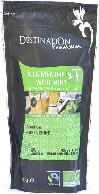Le thé vert à la menthe est réputé dans le monde entier, notamment au Maroc ou il se consomme de manière très régulière. Il est connu pour des vertues rafraîchissante, la version biologique du thé vert permet accentuer le goût épicé. Il est adéguster très chaud ou en thé glacé.