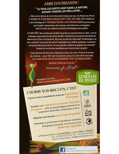 Pas besoin d’être un expert pour reconnaître cette gamme: Les fourrés, on les reconnaît d’abord à leur cœur gourmand et ensuite à leur goût inimitable. Laissez vous surprendre par notre tendre fourré caramel et beurre salé. Le secret de ces biscuits, c’est le mélange savoureux d’une farine de blé moulue à la meunerie familiale de montricoux (tarn-et-garonne) avec du beurre salé, du bon caramel, du sucre de canne équitable non raffiné, quelques noisettes, une pointe de jus de citron et une grande cuillère de pépites de chocolat issues du commerce équitable pour encore plus de goût.