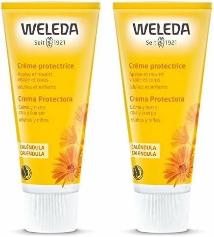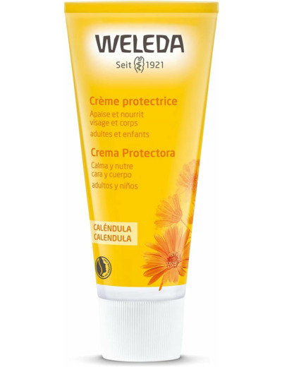 Digne héritière du travail d'une femme pas comme les autres, Ita Wegman, qui a su imposer sa vision révolutionnaire du soin dans un monde jusque-là réservé aux hommes, et du philosophe Rudolf Steiner, Weleda est une marque de cosmétiques naturels et bio, fondée en 1921. La société emprunte son nom aux prophétesses celtes expertes des plantes et de leurs vertus curatives. Véritables pionniers dans le secteur des cosmétiques naturels, les laboratoires Weleda mettent au point des formules à base d'ingrédients issus de l'agriculture biologique, biodynamique ou de cueillettes certifiées, exemptes de composants chimiques ou de conservateurs de synthèse et respectueuses de l'être humain comme de la nature. Labellisés NATRUE, les produits Weleda sont testés de manière à valider leur innocuité et leur tolérance par l'organisme. Produits de soin pour le visage et le corps, soins pour bébé, huiles de massages… : la marque propose une large gamme cosmétique pour le bien-être de toute la famille. La Crème Protectrice au Calendula Weleda est formulée pour soulager la peau du visage et du corps en cas de rougeurs, l'apaiser et la nourrir, en soutenant ses fonctions naturelles. À utiliser quotidiennement, cette crème Weleda convient à tous les membres de la famille, enfants ou adultes, pour prévenir le dessèchement cutané et protéger l'épiderme des agressions climatiques. Elle possède une texture onctueuse très agréable qui pénètre dans la peau rapidement, pour une peau protégée et toute douce. Actif phare de la gamme pour peaux sèches et sensibles de Weleda, le calendula, aussi nommé souci, est l'une des plantes médicinales les plus connues pour prendre soin de la peau grâce à ses propriétés apaisantes et adoucissantes. La tolérance cutanée de cette crème a été testée cliniquement sous contrôle dermatologique.