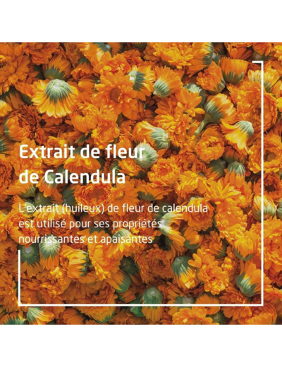-RICHE EN CALENDULA : Le calendula (ou souci) est une plante médicinale reconnue pour son action calmante sur les peaux sensibles. L'extrait huileux de calendula est parfaitement adapté pour nourrir et apaiser la peau des bébés.