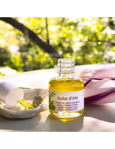 Aube d'été Soin de jour rééquilibrant baume fluide pour peaux normales & mixtes 15ml Ce concentré de beauté fluide et léger nourrit, protège et équilibre la peau. Son effet bonne mine est immédiat, votre teint devient plus lumineux, purifié. Sa fragrance: ronde et fleurie, Aube d'été vous ouvrira les portes d'une sensualité à la candeur raffinée. Marque : Les Douces Angevines Ses engagements : 1. Label Cosmebio : contrôles ECOCERT sur la quasi totalité de nos fluides, certifiés « écologique et biologique » 2. Production artisanale en séries limitées : 2 à 30 litres maximum par produit, par saisons. 3. Plantes cueillies à la main dans notre jardin de beauté, et dans la nature sous règles strictes. 4. Huiles essentielles issues de petits producteurs avec accord solidaire (50% de la composition) 5. Transformations manuelles à base de process doux de fabrication (Macérats, concentrations), non polluantes, utilisant les énergies naturelles. 6. Dynamisation...