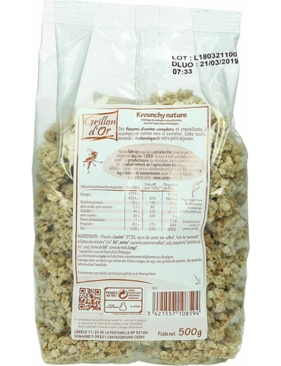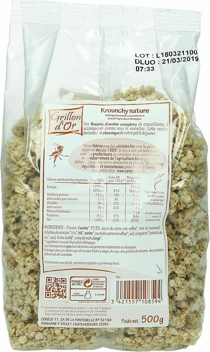 Krounchy avoine nature 500g Grillon d Or