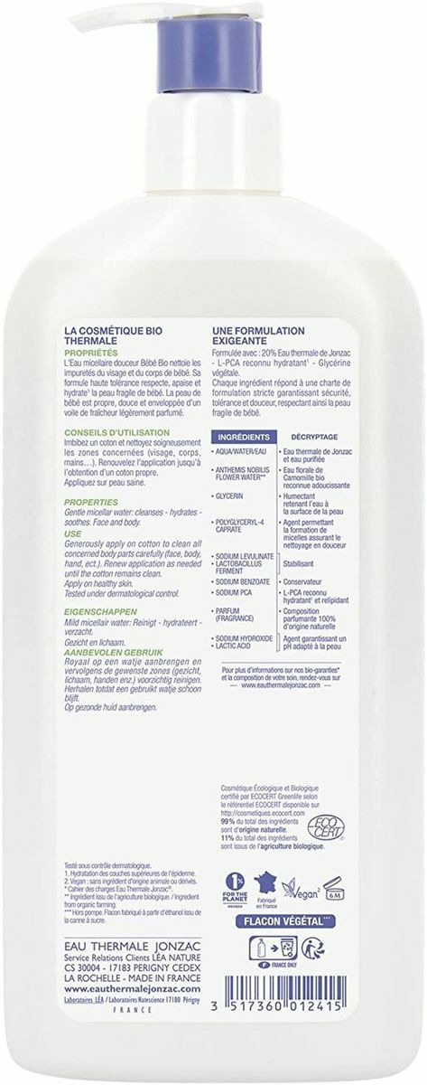 Eau micellaire douceur BB 500ml Jonzac Bebe Bio