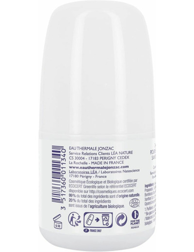 Aqua / water / eau *, Anthemis Nobilis Flower Water**, Propanediol, Talc,Triethyl Citrate, Parfum (Fragrance), Zinc PCA, Candida Bombicola/Glucose/Methyl Rapeseedate Ferment, Sodium Levulinate, Xanthan Gum, Decyl Glucoside, Sodium Benzoate, Glycerin,Lactic Acid, Glyceryl Undecylenate, Potassium Sorbate. * Eau Thermale de Jonzac et eau. ** ingrédients issus de l'agriculture biologique. 99% du total des ingrédients sont d'origine naturelle. 20% du total des ingrédients sont issus de l'agriculture biologique.