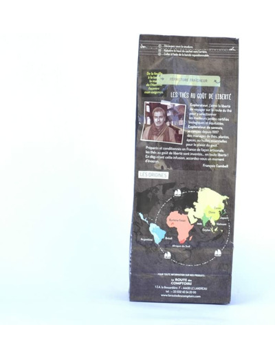 D’origine asiatique, la bergamote est un agrume apprécié en aromathérapie pour ses vertus revitalisantes. Avec ce mélange savoureux d’un thé noir de qualité supérieure, cultivé au sud de l’Inde et de la note florale de l'huile essentielle de bergamote, partez à la rencontre d’un orient puissant et envoûtant. Couleur : noir foncé Saveur : fruitée Intensité de l'infusion : équilibrée Ingrédients: Thé noir *, huile essentielle certifiée de bergamote, pétales de bleuet*. Ingrédient conforme aux standards du commerce équitable Fairtrade / Max Havelaar : Thé noir (97% du poids total). * Ingrédients issus de l'agriculture biologique