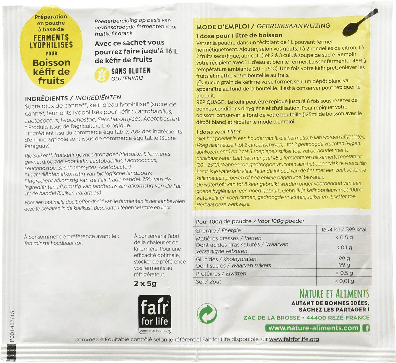 FERMENT BOISSON KEFIR FRUITS 2X5G Nat Ali