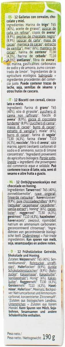 Biscuit petit dej cereales miel cho 190g P tit dej
