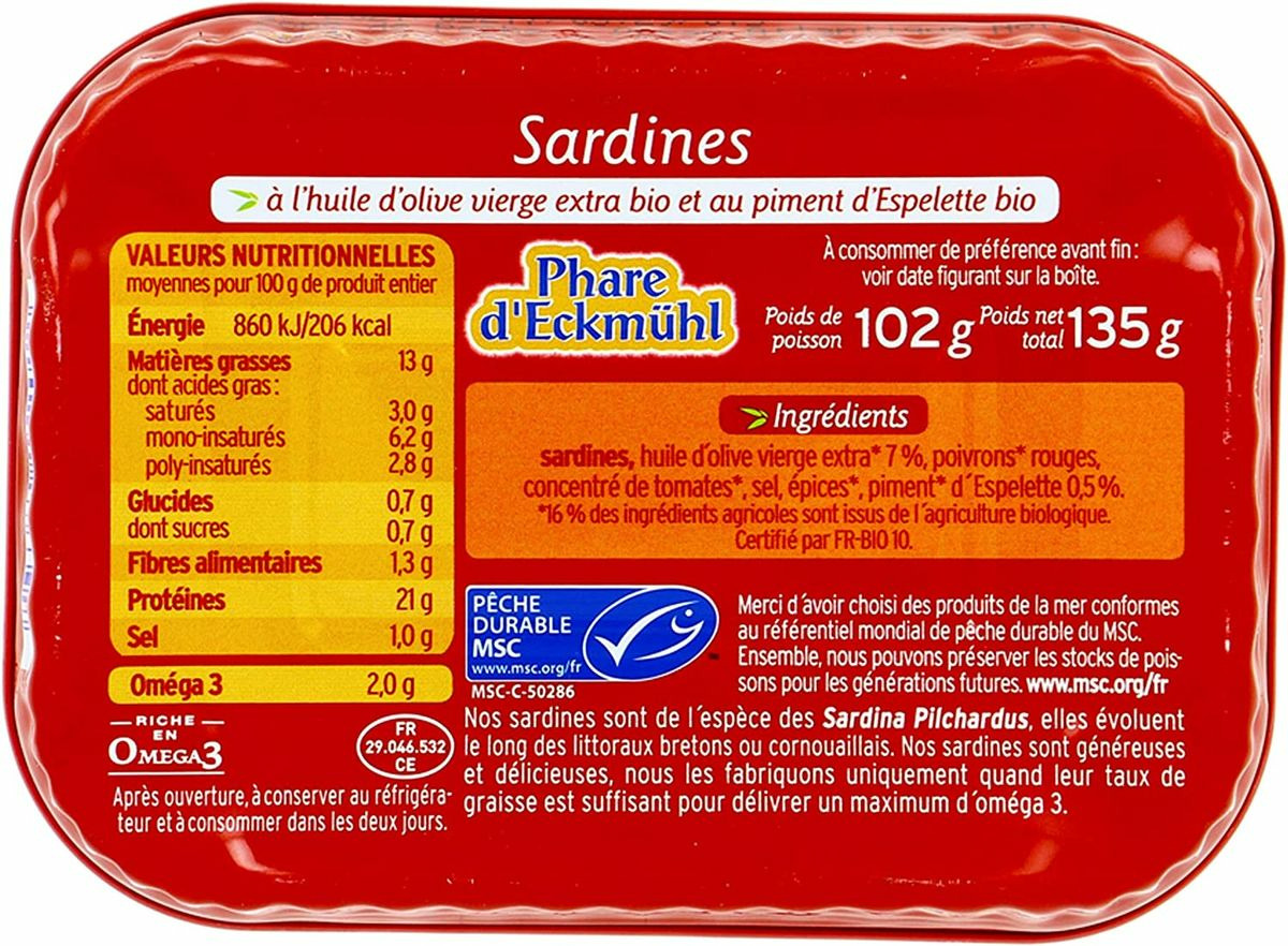 Sardines au piment d'Espelette MSC 135G Pour votre santé, pratiquez une activité physique régulière. Phare D'Eckmuhl
