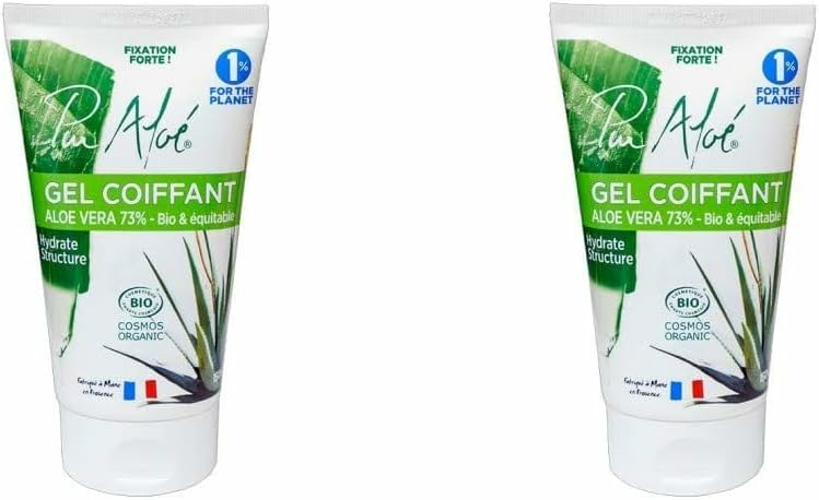 Gel à la pulpe fraiche de feuilles d'Aloé :Le gel coiffant est composé à 73% de pulpe fraîche de feuilles d'Aloé vera barbadensis Miller, cultivées en agriculture biologique et en Commerce Équitable. Notre Gel coiffant prendra naturellement soin de vos cheveux et de votre cuir chevelu. Ils seront ainsi protégés des agressions extérieures tout au long de la journée. Le gel ne laisse pas de résidus.