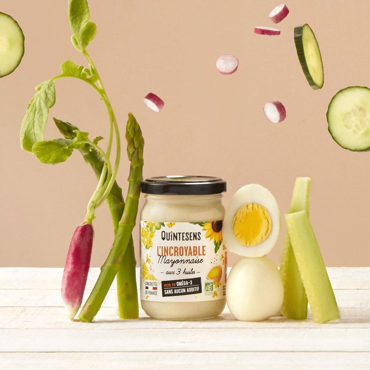 Une recette ultra-clean avec seulement 5 ingrédients : un mélange d’huiles riches en Oméga-3 et Vitamine E, de bons œufs de poules élevés en France, de la moutarde bio du Limousin, du citron, une pointe de sel … et rien d’autre !! Une incroyable recette faite-maison, sans sucre, ni additif. Une composition saine, une recette gourmande, des ingrédients français, découvrez LA Mayonnaise qui a vraiment tout bon !