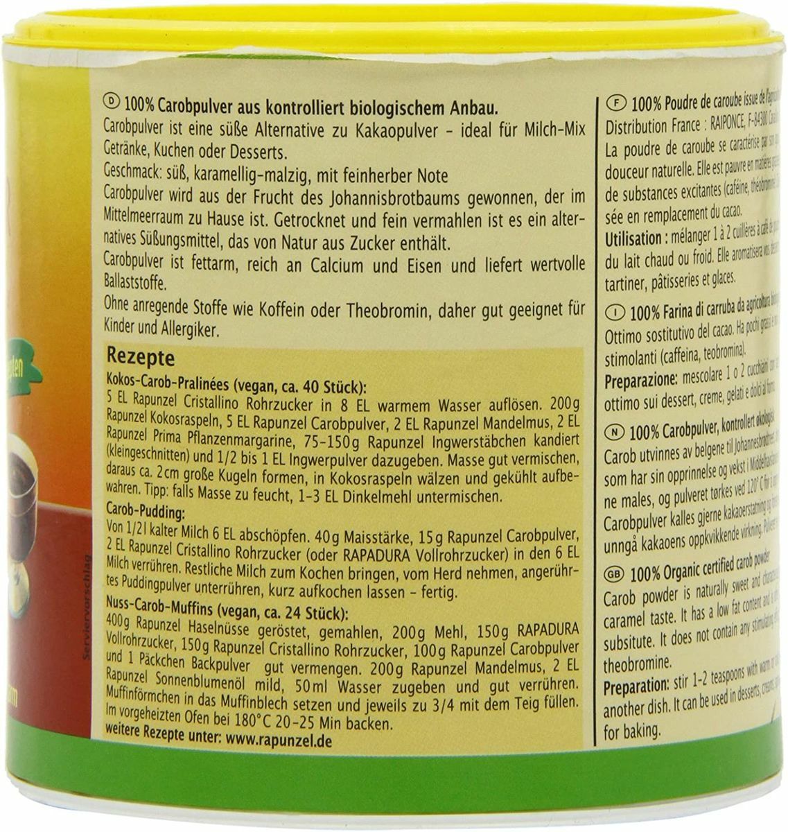POUDRE DE CAROUBE 250G Rapunzel